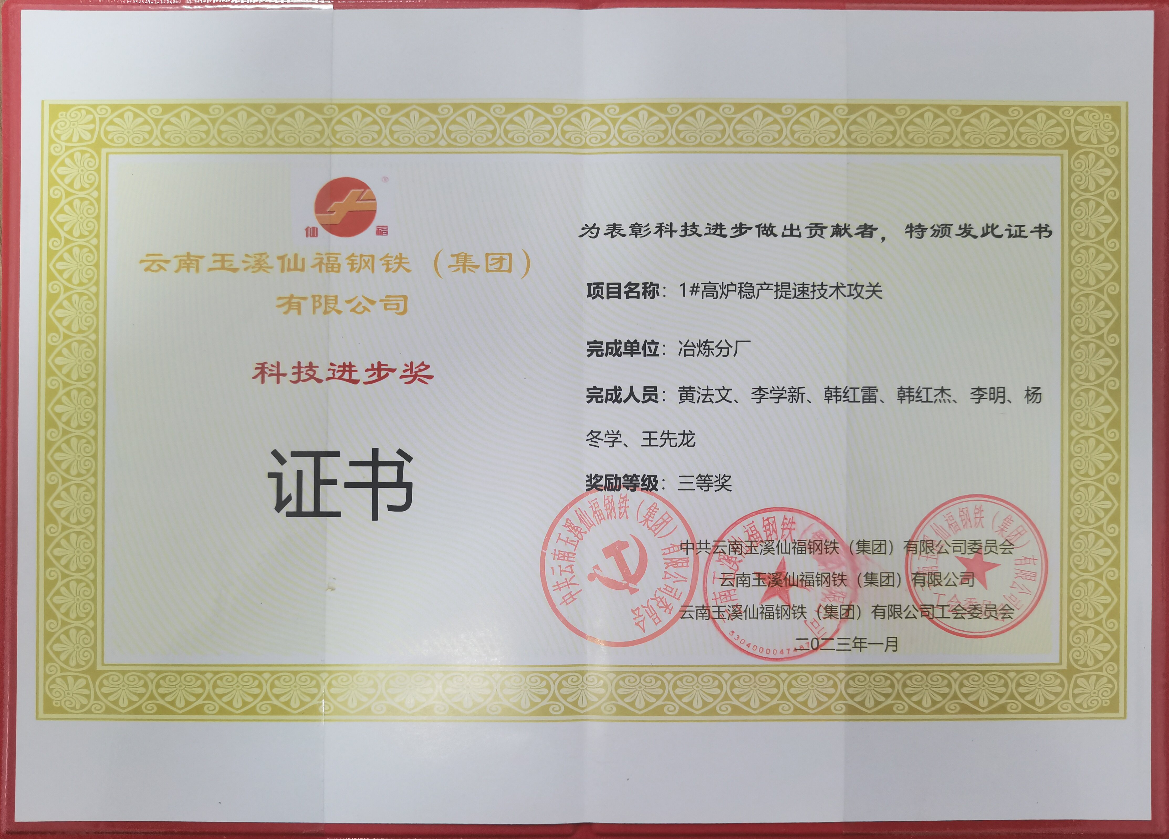 煉鐵廠秉持著科技發(fā)展是第一生產(chǎn)力的理念,認(rèn)真鉆研、克服困難,通過(guò)煉鐵廠全員共同努力,組織攻關(guān)的核心技術(shù)改造榮獲科技進(jìn)步獎(jiǎng)49項(xiàng),獲得實(shí)用新型專利27項(xiàng)。