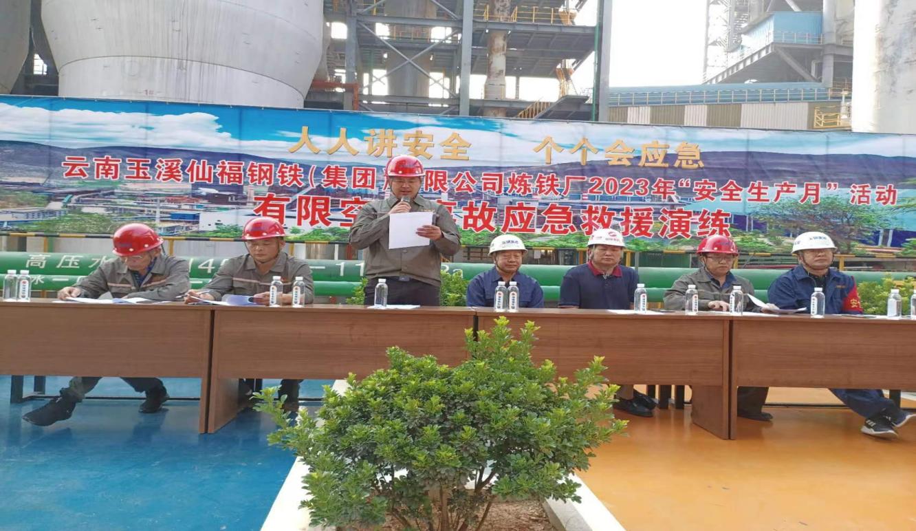 2023年仙福鋼鐵集團黨委組織四個黨支部參加煉鐵廠有限空間事故應急救援演練